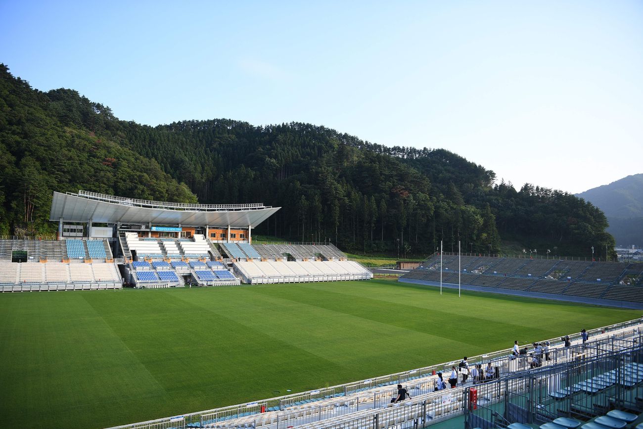 Kamaishi está situado en una zona altamente montañosa, que incluye montañas ubicadas detrás de la tribuna principal del estadio. La integridad de estas laderas después de una lluvia sin precedentes, no podía garantizarse antes del inicio del partido.